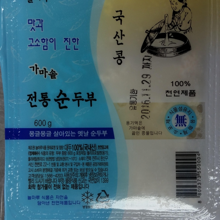 상품소개 국산콩 순두부 600g 식품 2,500원 - 전주지역 생산 콩 원료 사용 국산콩 두부 350g 식품 2,800원 - 전주지역 생산 콩 원료 사용 상품문의 문의 0 문의목록 등록된 문의가 없습니다. 목록