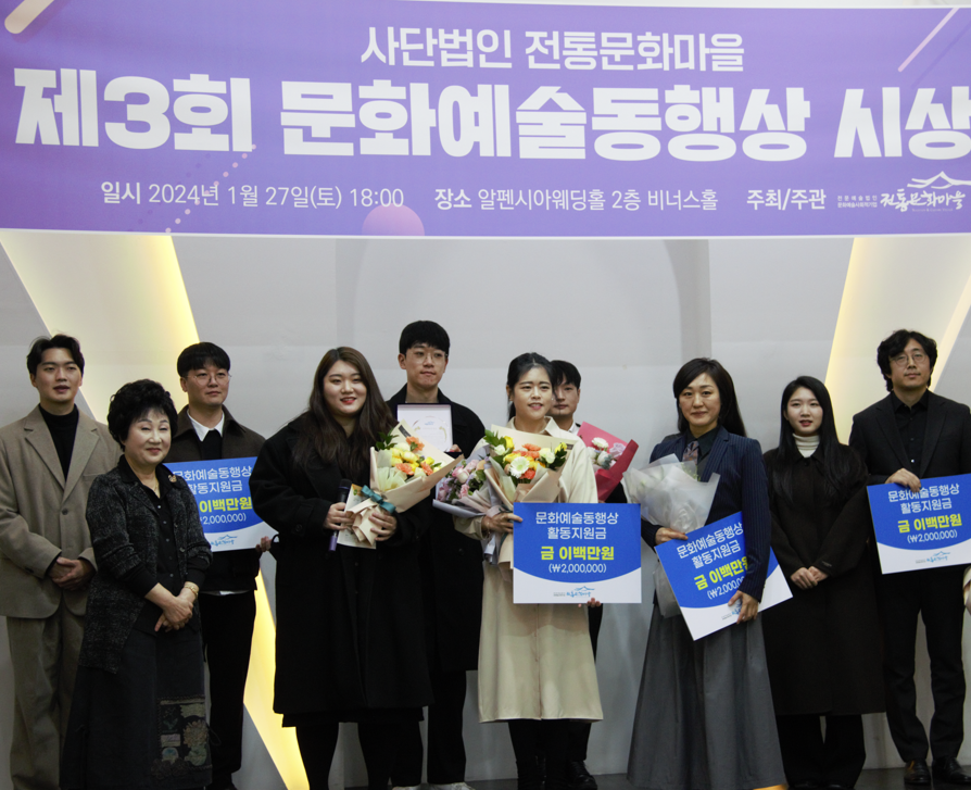 (사)전통문화마을은 전문예술법인이자 공익법인으로서 문화예술인에게는 신명나는 일터를 제공하고, 지역사회에는 문화예술로 행복한 삶터를 가꾸자는 큰 꿈을 이루기 위해 노력하고 있습니다.