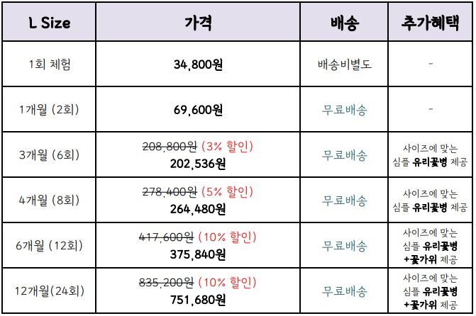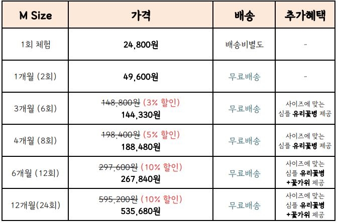 추가혜택: 3,4개월 -심플 유리꽃병 제공