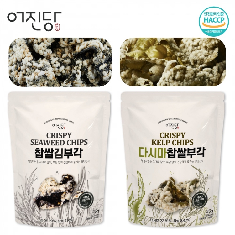 고흥산 김과 완도 다시마, 신동진 찹쌀을 활용하여 부각을 생산합니다. HACCP 시설에서 생산되며, 수유(水油)식 튀김기를 사용하여 산패가 적고 고소합니다.