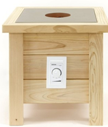 머드 or 황토 좌욕기로서 편백나무 틀안에 적외선 전구 장치.