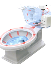 특허, 중소벤처기업부 성능인증 등으로 검증된 변기 탈취 시스템으로서 악취가 퍼지기 전에 저수조로 빨아들여 물에 녹여 악취를 없애주는 제품.