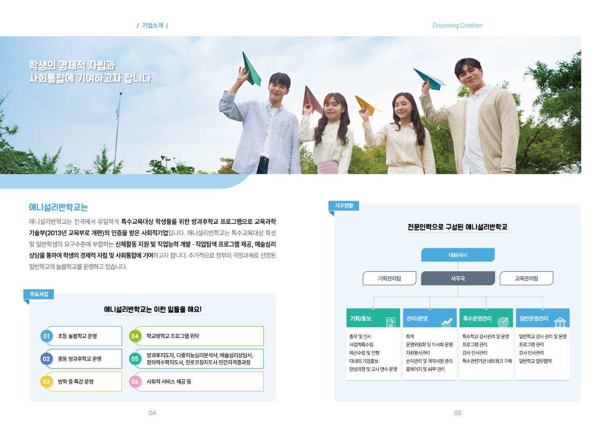 애니설리반학교는 방과후학교, 돌봄 교실, 영어캠프를 통해 학생들에게 맞춤형 학습과 성장을 지원하는 사회적 기업입니다.