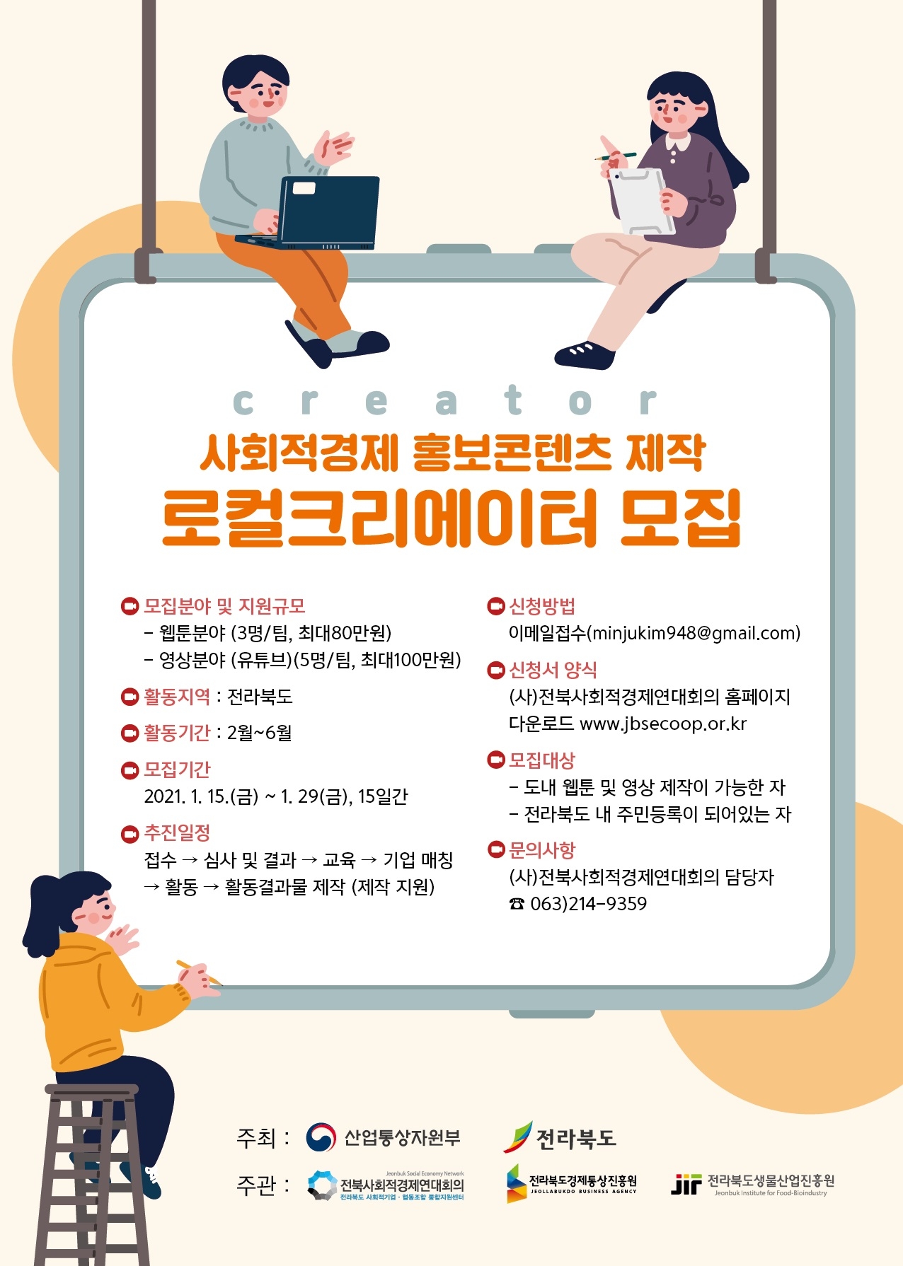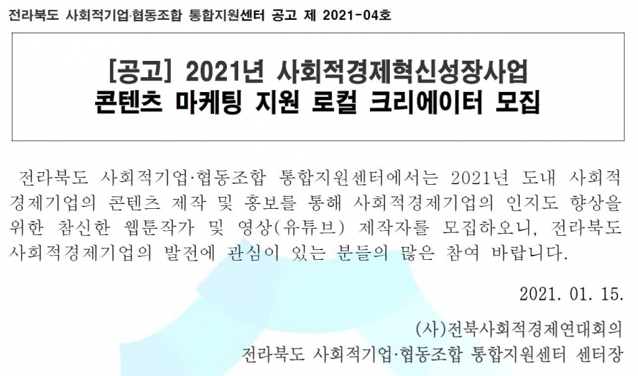 [전북 사회적기업 ·협동조합 통합지원센터]2021년 사회적경제혁신성장사업 콘텐츠 마케팅 지원 로컬 크리에이터 모집
