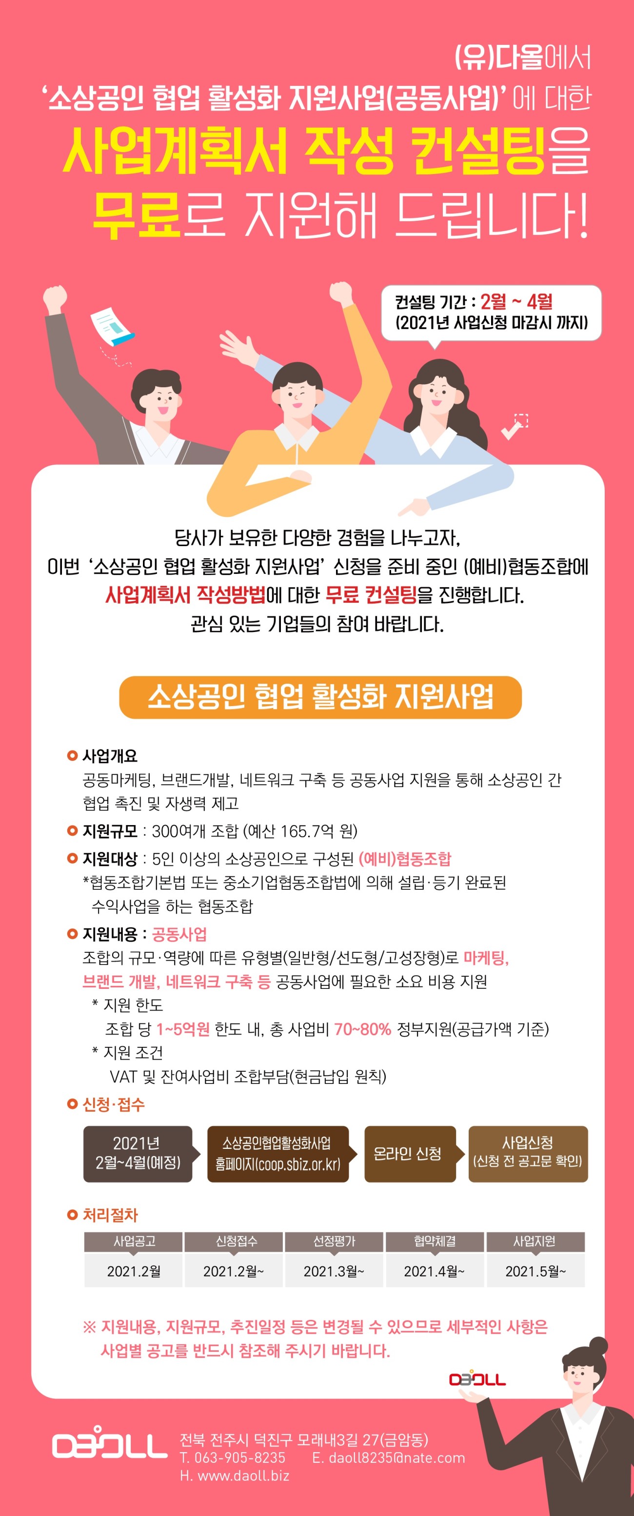 사회적기업 (유)다올에서 소상공인 협업 활성화 지원사업(공동사업)에 대한