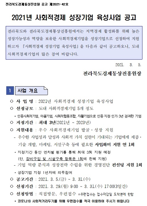 [전라북도경제통상진흥원] 2021년 사회적경제 성장기업 육성사업 참여기업 모집
