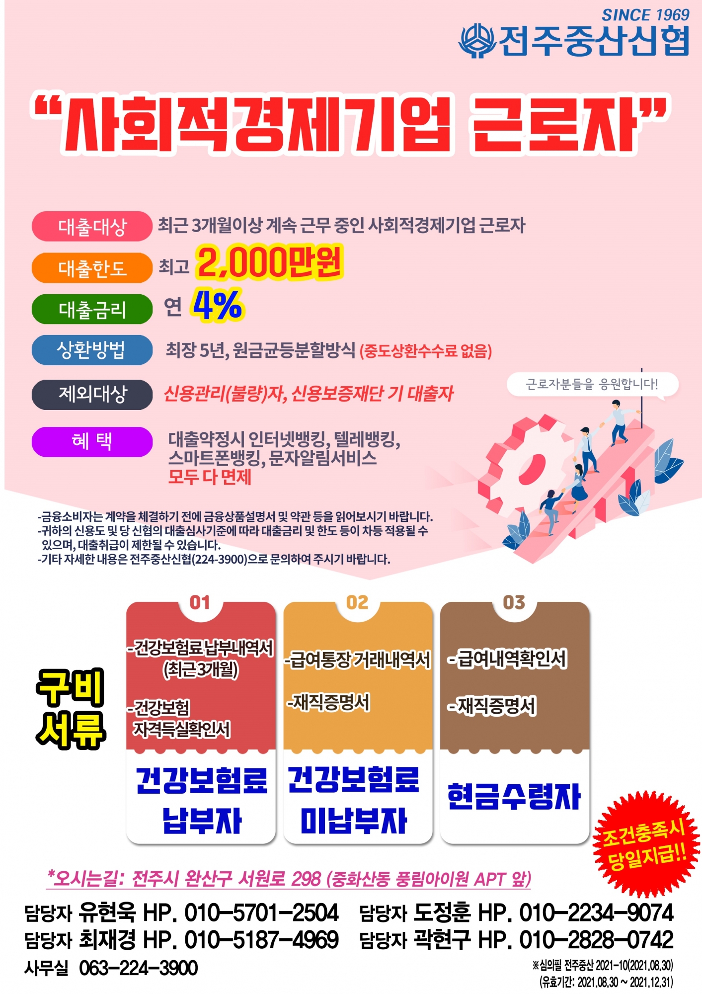 [전주중산신협] 사회적경제기업 및 근로자를 위한 대출 지원 안내
