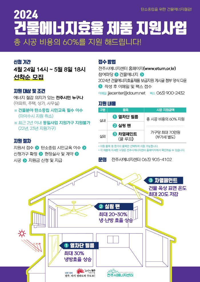 # 전주시에너지센터 홈페이지(eturn.or.kr) → 지원사업 → 2024년 건물에너지효율제품보급지원 게시글 →