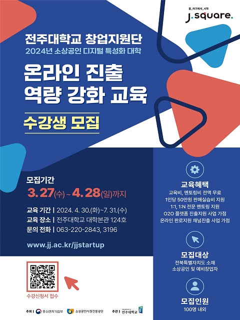 [전주대학교 창업지원단] 2024년 소상공인 디지털 특성화 대학 '온라인 진출 역량 강화 교육' 수강생 모집