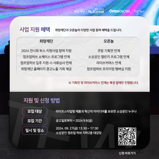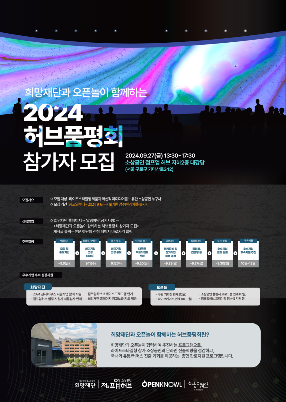 [(재)중소상공인희망재단] 희망재단과 오픈놀이 함께하는 <2024 허브품평회> 참가자 모집(~9/6까지)