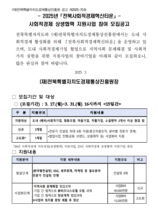 [전북특별자치도경제통상진흥원] 2025년 사회적경제 상생협력 지원사업 참여 모집