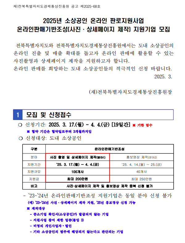 [전북특별자치도경제통상진흥원] 2025년 소상공인 온라인판매기반조성(사진 · 상세페이지 제작) 지원 기업 모집