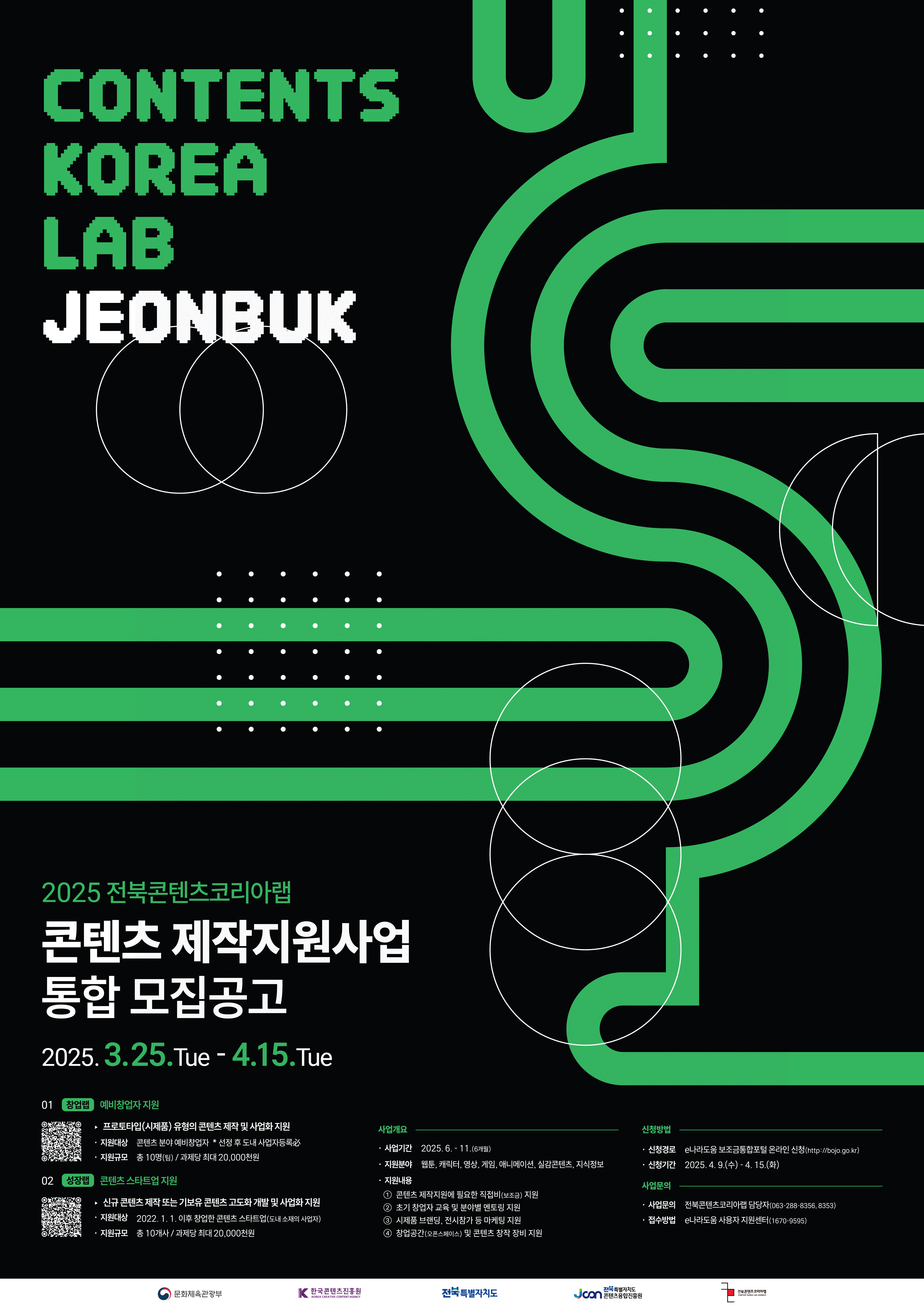 세부정보는 전북콘텐츠코리아랩 홈페이지를 확인해주시기 바랍니다!