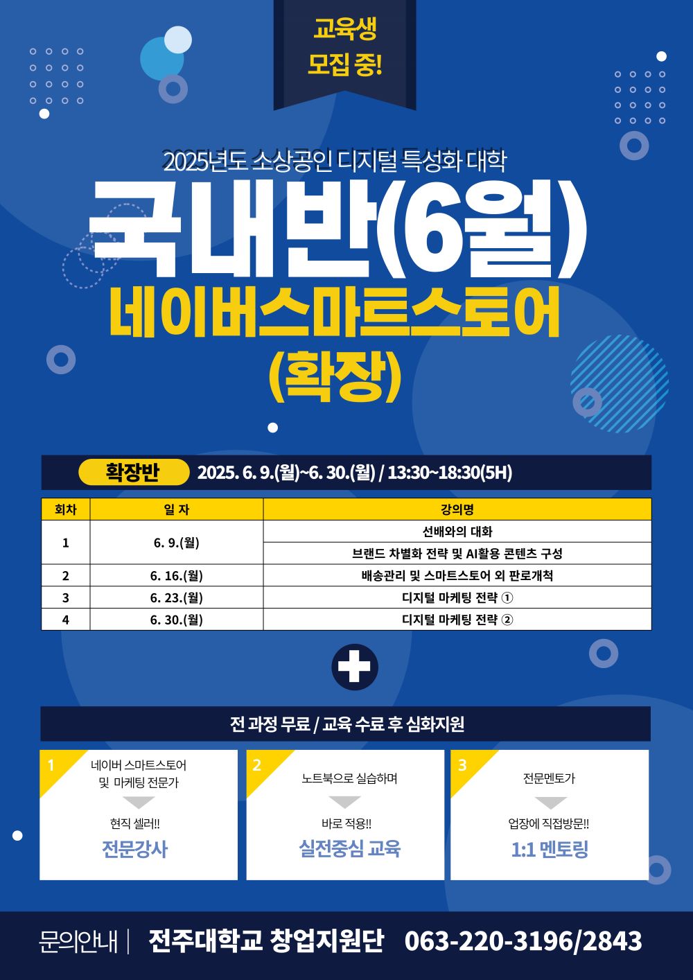 [전주대학교 창업지원단] 2025년 소상공인 디지털 특성화 대학 "성장반, 확장반" 6월 교육생 모집