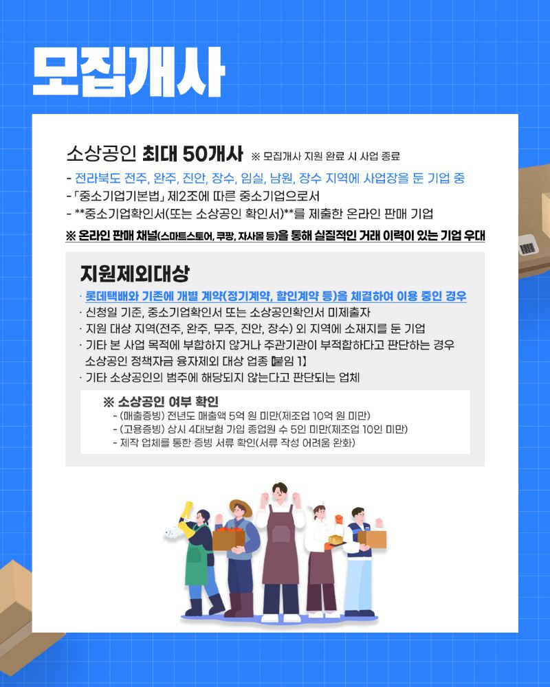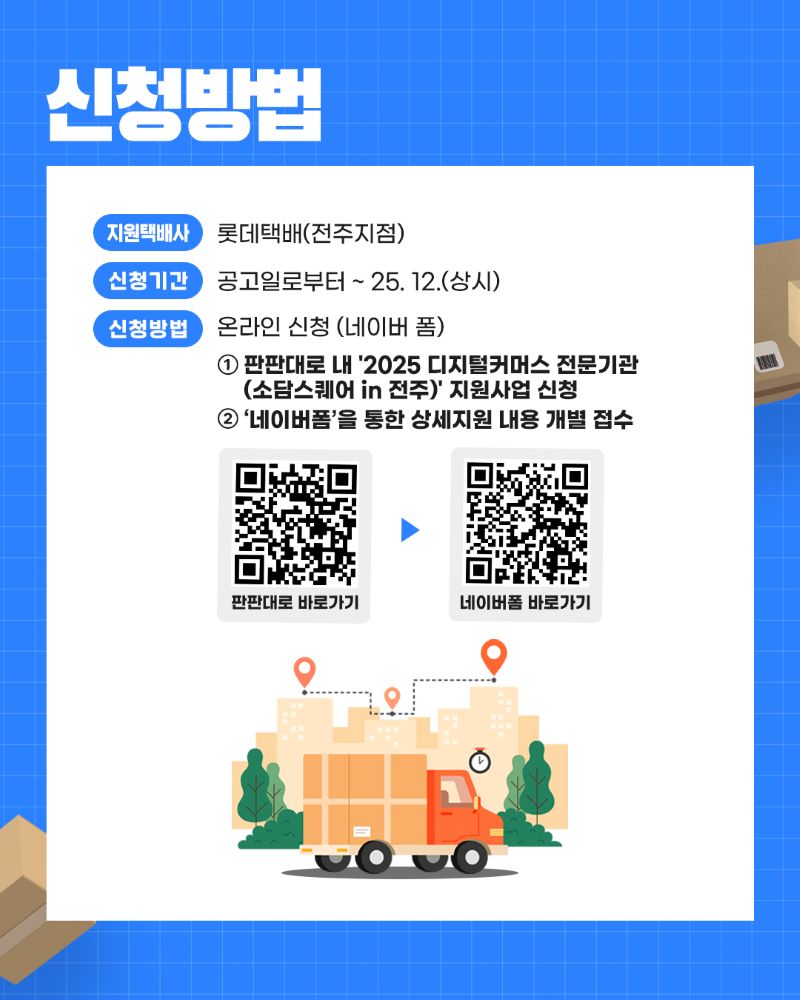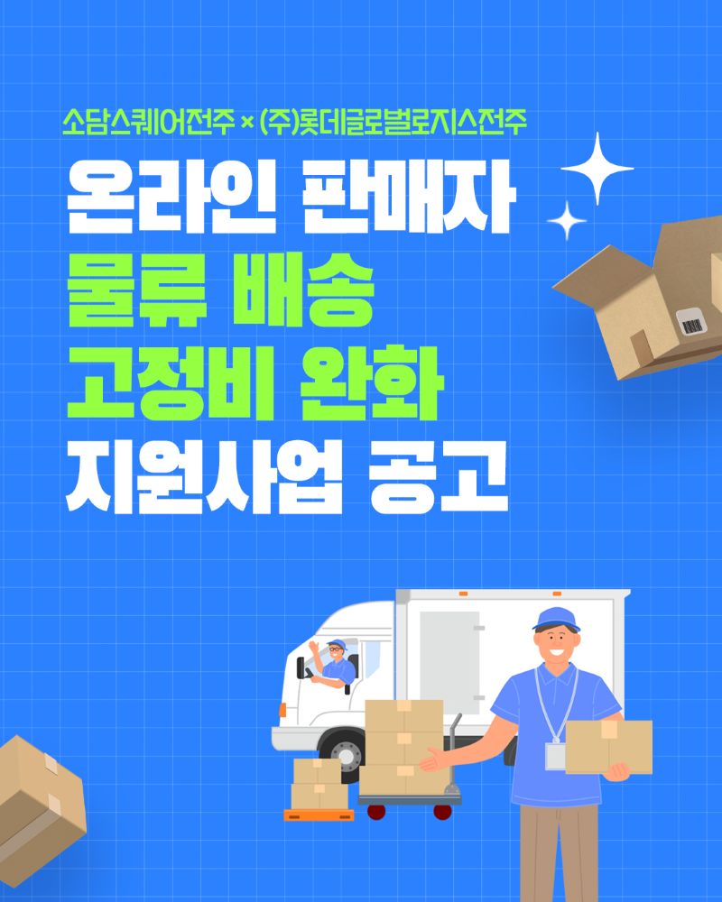 [소담스퀘어전주X(주)롯데글로벌로지스전주] 온라인 판매자 물류 배송 고정비 완화 지원사업 페이지 정보 작성자 전주소통협력센터 댓글 0건 조회 462회 작성일 25-06-30 10:47 목록 본문 이전글[전북특별자치도콘텐츠융합진흥원] 「디지털 크리에이터 양성교육 프로그램」 연계 특강 교육생 모집 25-07-01 다음글[전주대학교 창업지원단] 2025년 소상공인 디지털 특성화 대학 해외플랫폼(이베이) 교육생 모집 25-06-25