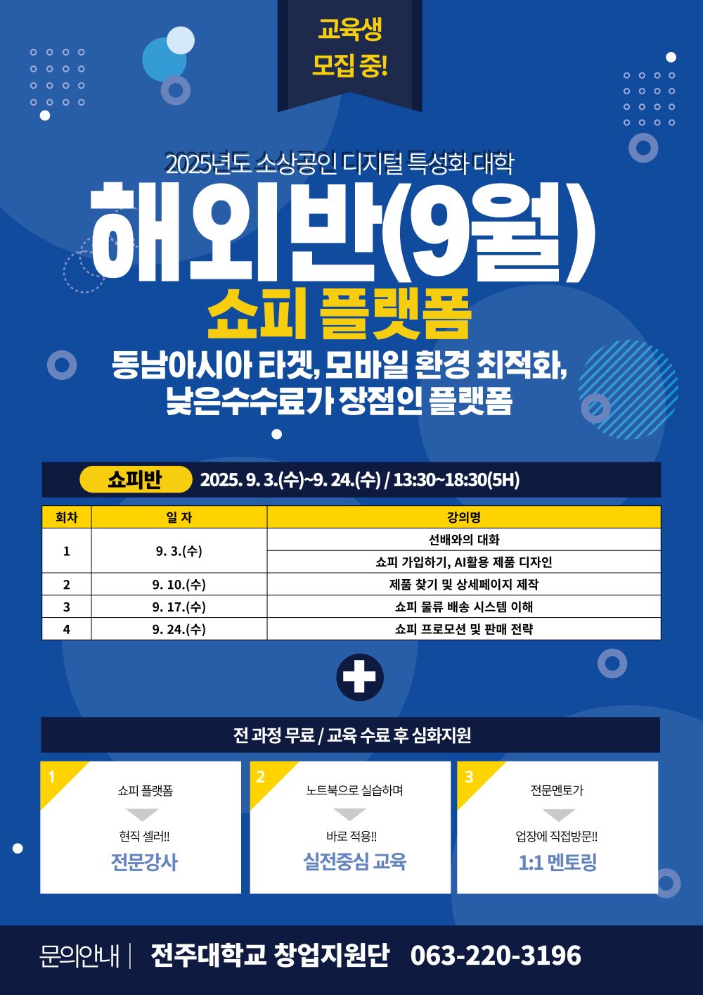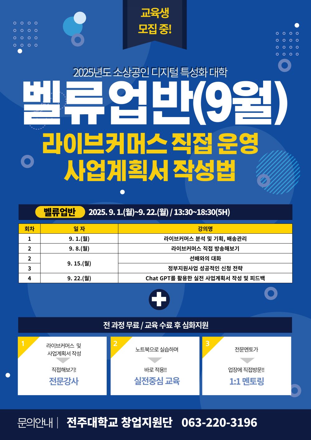 [전주대 창업지원단] 2025년 소상공인 디지털 특성화 대학 9월 교육생 모집