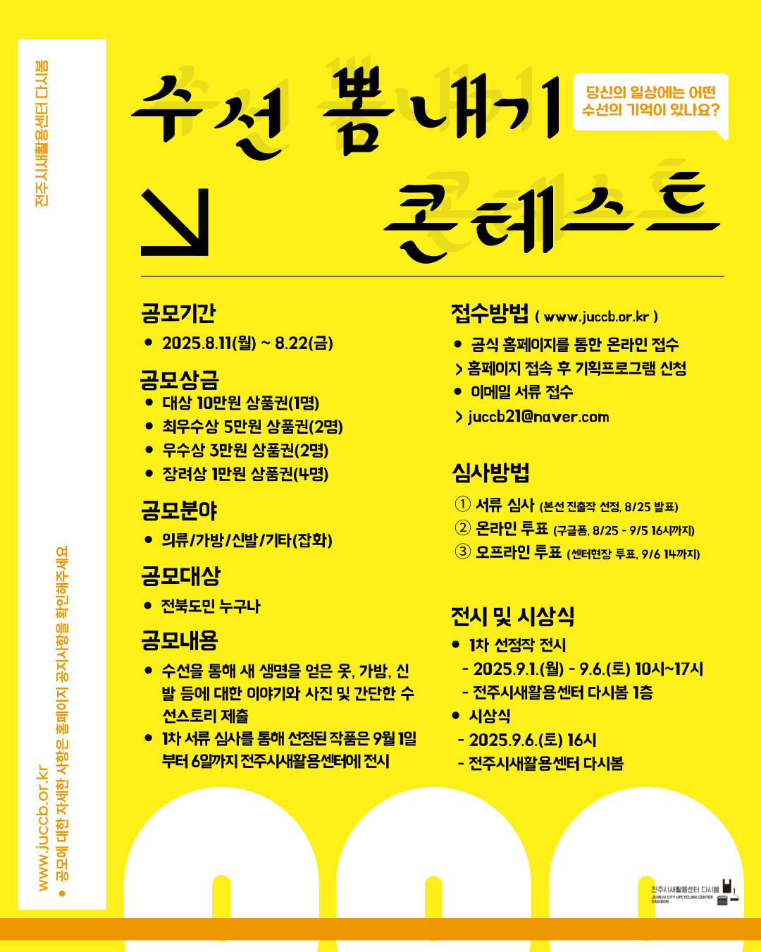 -접수방법: 온라인 제출 (전주시새활용센터 홈페이지 신청 또는 이메일 제출)